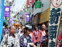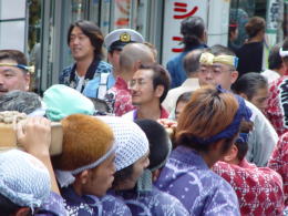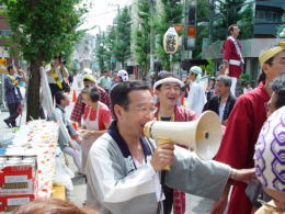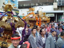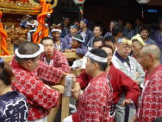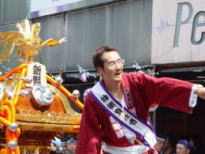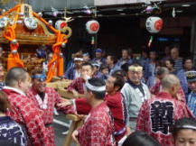 | 山本役員、爺、宮田惣町 | 南口を行く新野神輿 | なごやかに・・・ 牧野惣町とちあき |