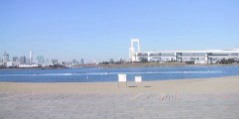 海辺に出ると台場公園とレインボーブリッジ