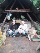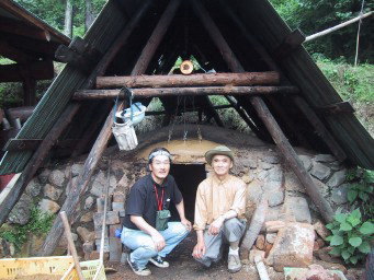 爺と剛さん〜四窯ある炭窯のうちの一窯の前で